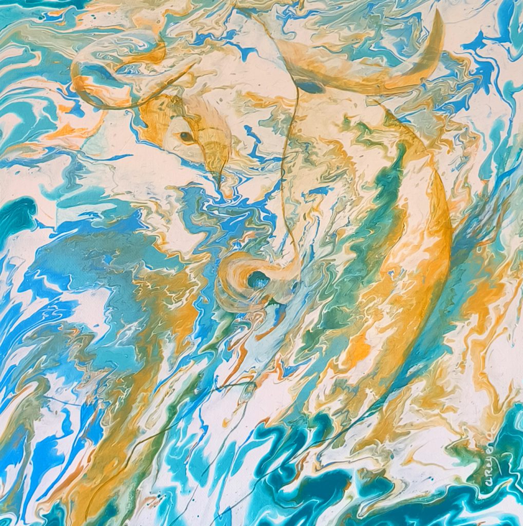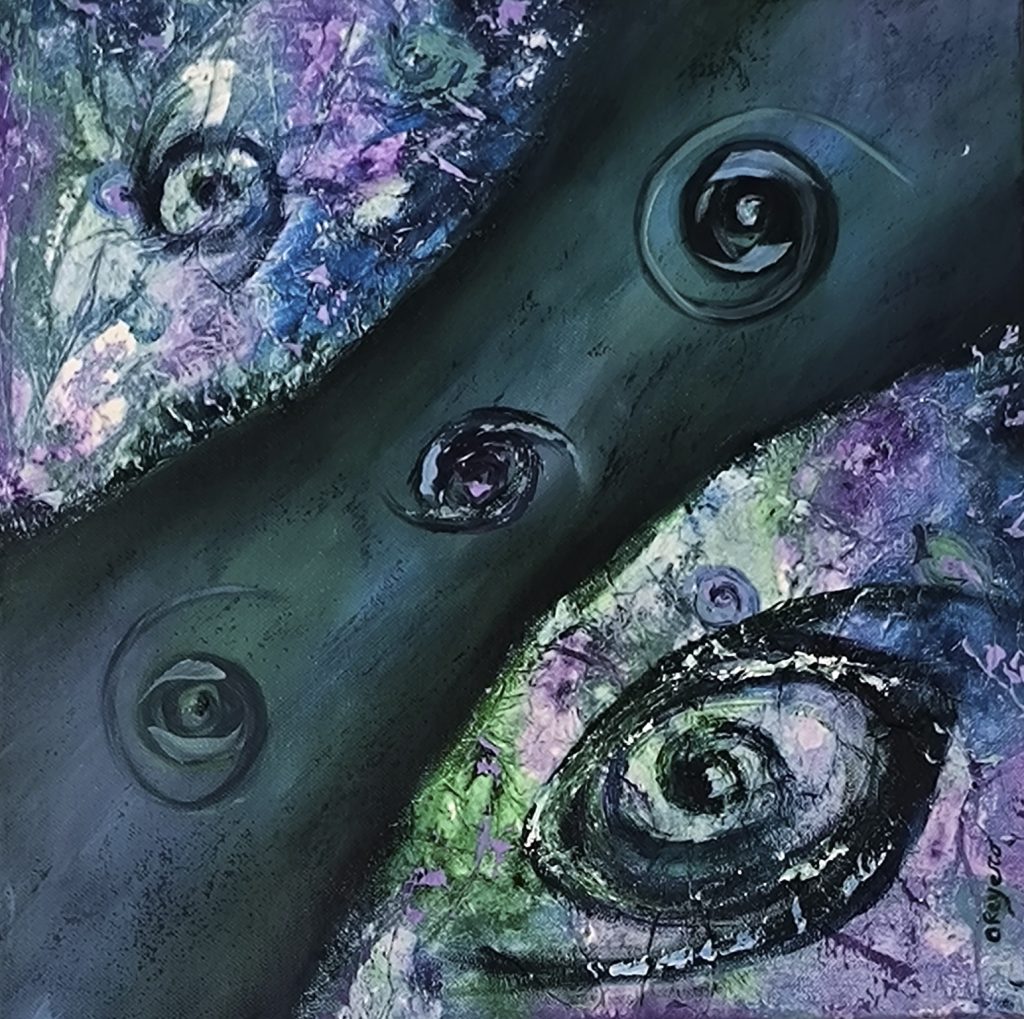 “El lenguaje de los fluidos” Acrílico s/lienzo 40×40 PVP: 200